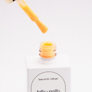 Un vernis semi-permanent orange pastel, une teinte pĂŞche douce et vibrante, parfaite pour illuminer vos ongles au soleil.